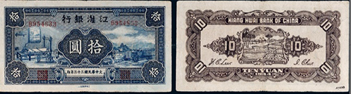 淮南銀行1942年成立,行址設(shè)于江蘇淮安盱眙縣,發(fā)行淮南幣通行于淮南地區(qū)各縣。1945年8月與淮北地方銀號(hào)、江淮銀行、鹽阜銀行、淮海銀行4個(gè)地方銀行合并組成華中銀行。