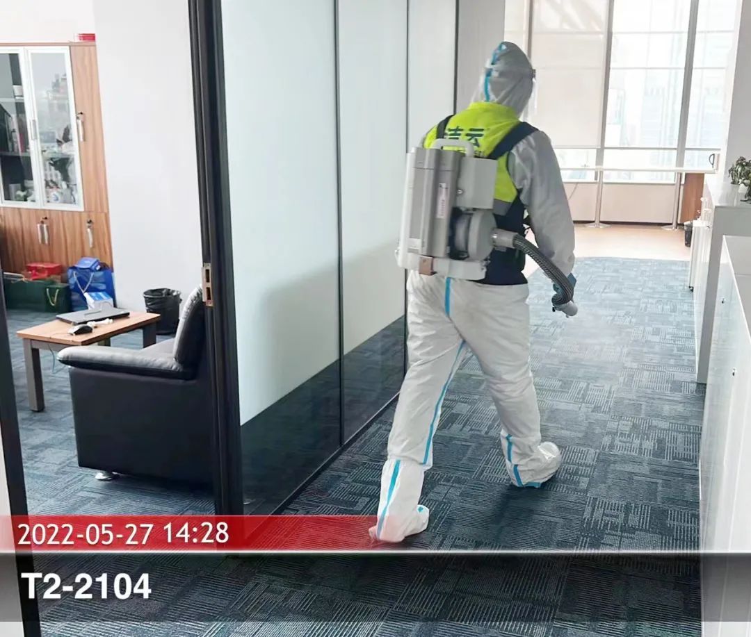 復(fù)工之前,對接物業(yè)方對辦公區(qū)域進(jìn)行消殺,全面消毒,不留死角,讓同事們安心歸隊(duì)