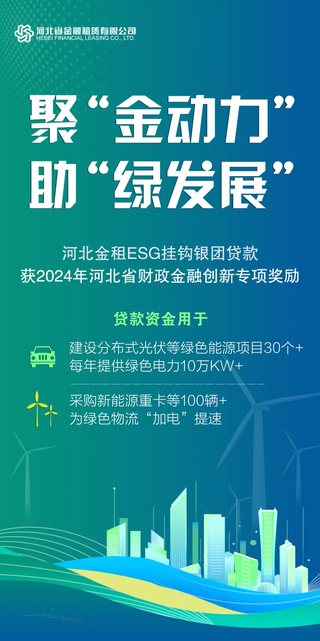 河北省財政2024年“合力支持企業(yè)發(fā)展專項資金項目”評選結(jié)果日前公示,河北省金融租賃有限公司(以下簡稱“河北金租”或“公司”)ESG掛鉤銀團(tuán)貸款項目在評選中脫穎而出,獲得金融創(chuàng)新類專項獎勵。公司履行企業(yè)社會責(zé)任,探索綠色租賃業(yè)務(wù)的經(jīng)營實(shí)踐獲得了政府部門的高度認(rèn)可。