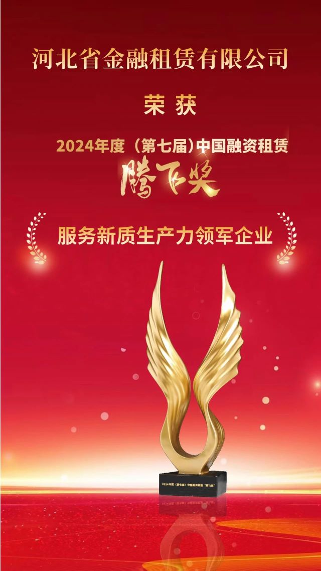 2024年12月4日-5日,以“發(fā)力‘兩新’租賃,助力先進(jìn)產(chǎn)能”為主題的2024年(第十一屆)全球租賃業(yè)競爭力論壇峰會在天津?yàn)I海新區(qū)圓滿舉行。河北省金融租賃有限公司(以下簡稱“河北金租”或“公司”)監(jiān)事長楊應(yīng)群受邀參會,在此次峰會上,河北金租憑借在戰(zhàn)略性新興產(chǎn)業(yè)領(lǐng)域的務(wù)實(shí)探索和優(yōu)秀業(yè)績,榮獲“騰飛獎(jiǎng)·服務(wù)新質(zhì)生產(chǎn)力領(lǐng)軍企業(yè)”獎(jiǎng)項(xiàng)。